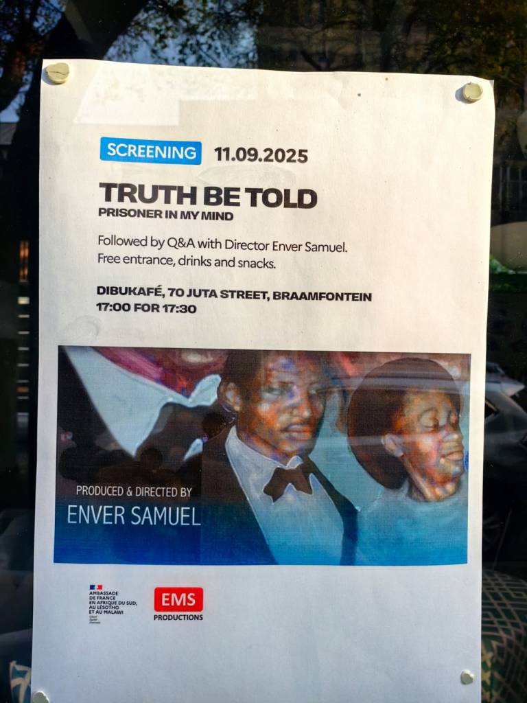 The French Embassy in South Africa and the French Institute of South Africa (IFAS) played host to a full house screening of Prisoner in My Mind last night at the Dibukafe in Braamfontein… The ‘national dialogue’ was intense.